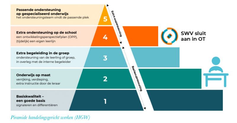Op ondersteuningsniveau 3 (zie plaatje 1) maken we op De Achtbaan een Topdossier (met OPP) aan. We hebben het hoorrecht van ouder en kind verwerkt onder de punten 5 + 6 van de HGW ronde (zie plaatje 2) in het Topdossier. Dit gebeurt tijdens een MDO op school. Ouders geven daarna digitaal instemming op het plan bij punt 8.